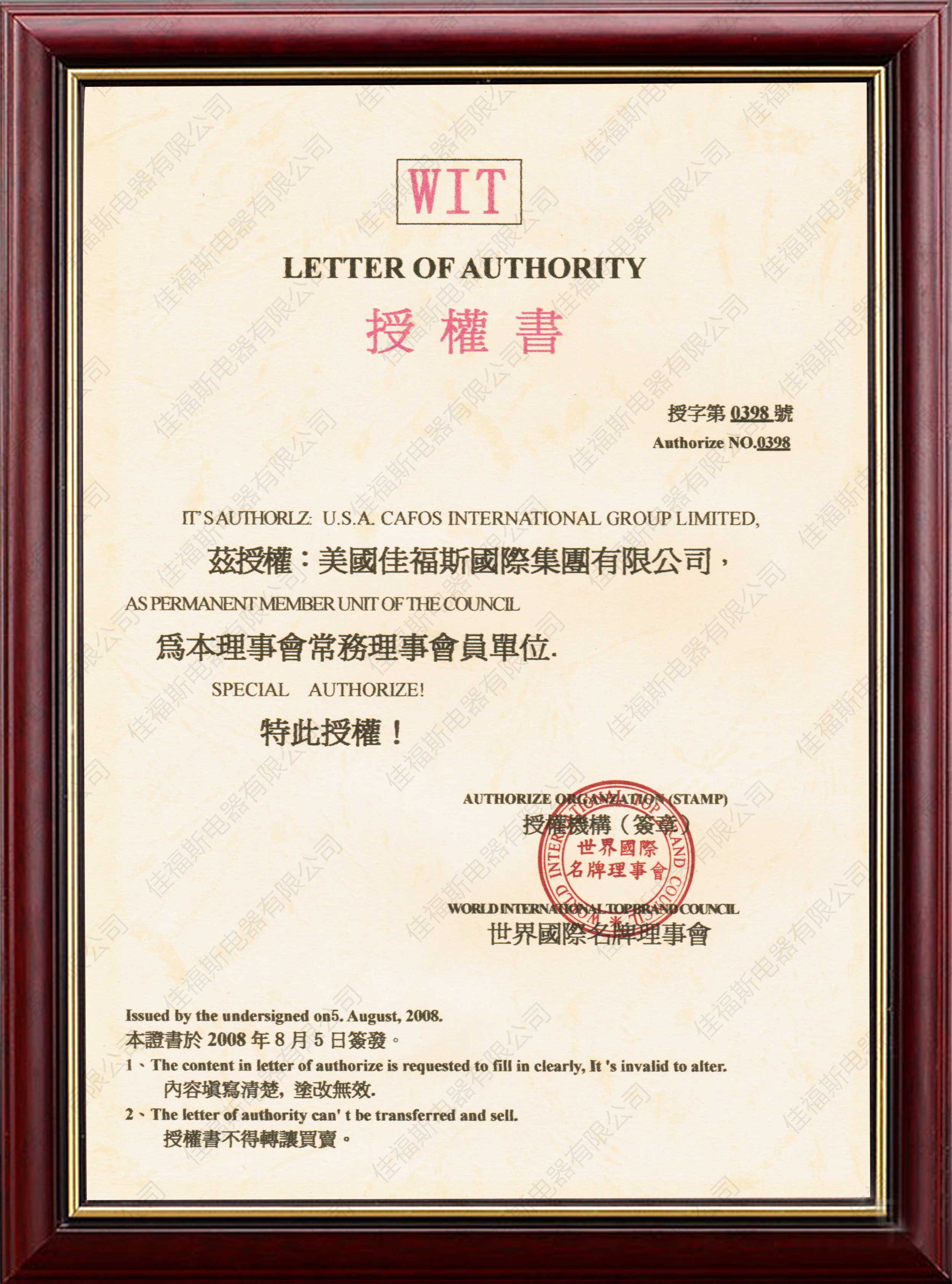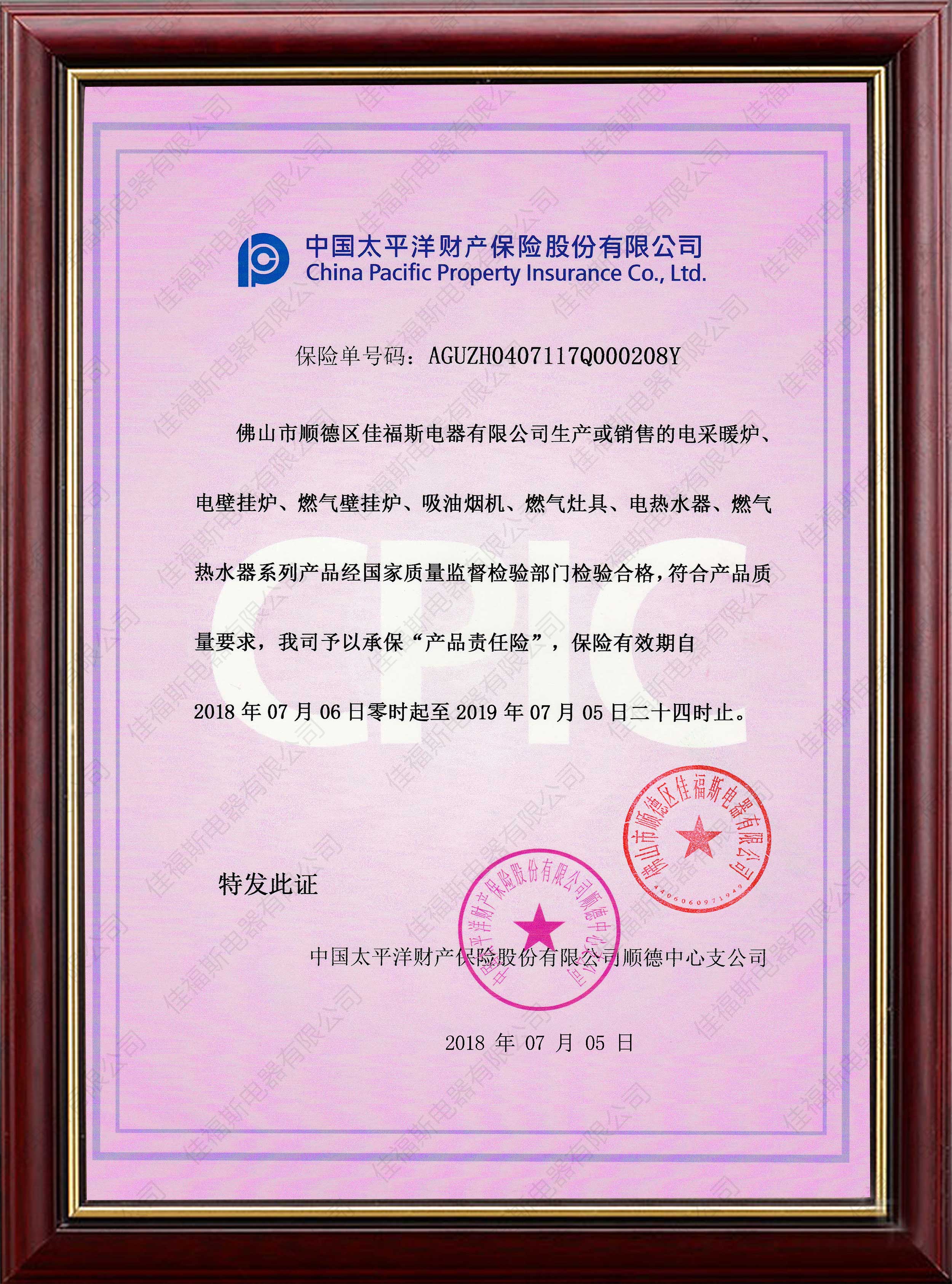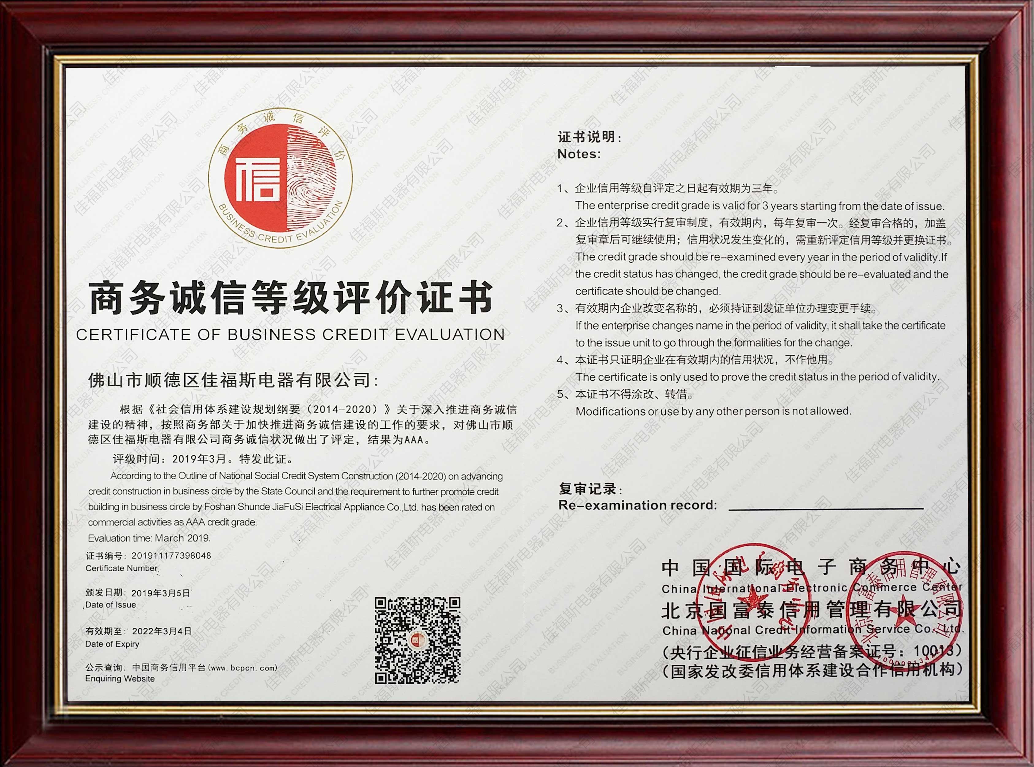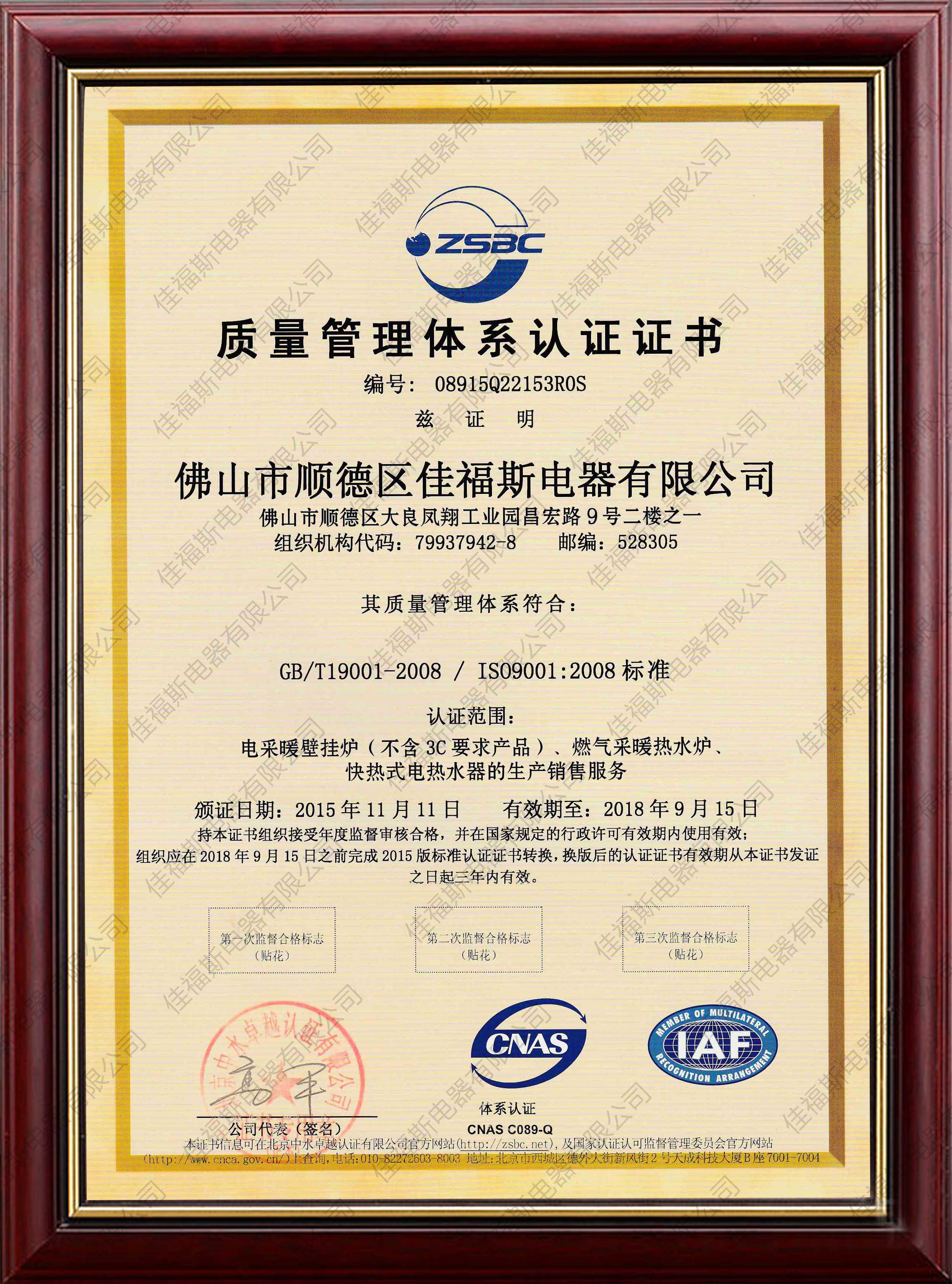 質(zhì)量認(rèn)證證書